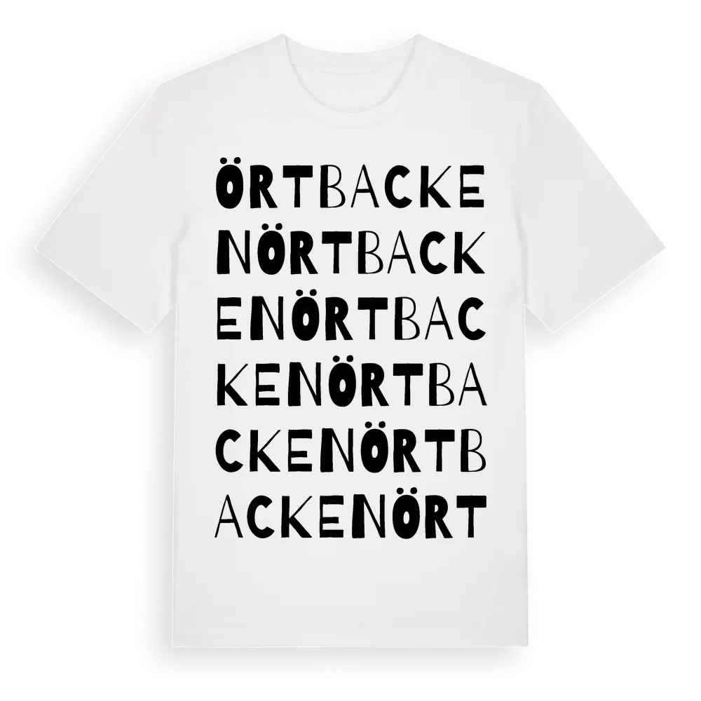 Örtbacken ordlek t-shirt är inspirerad av Örtbacken i Uppsala län, Sverige. Tröjan är designad för dig som har en speciell koppling till platsen – oavsett om du bor här, har rötterna här eller bara älskar Örtbacken.