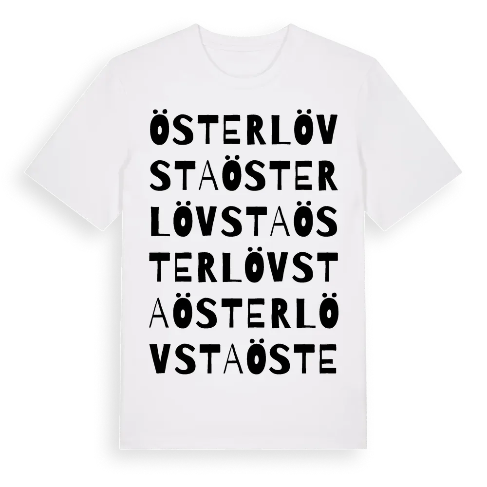 Österlövsta ordlek t-shirt är inspirerad av byn Österlövsta i Uppsala län, Sverige. Tröjan är designad för dig som har en speciell koppling till platsen – oavsett om du bor här, har rötterna här eller bara älskar Österlövsta.