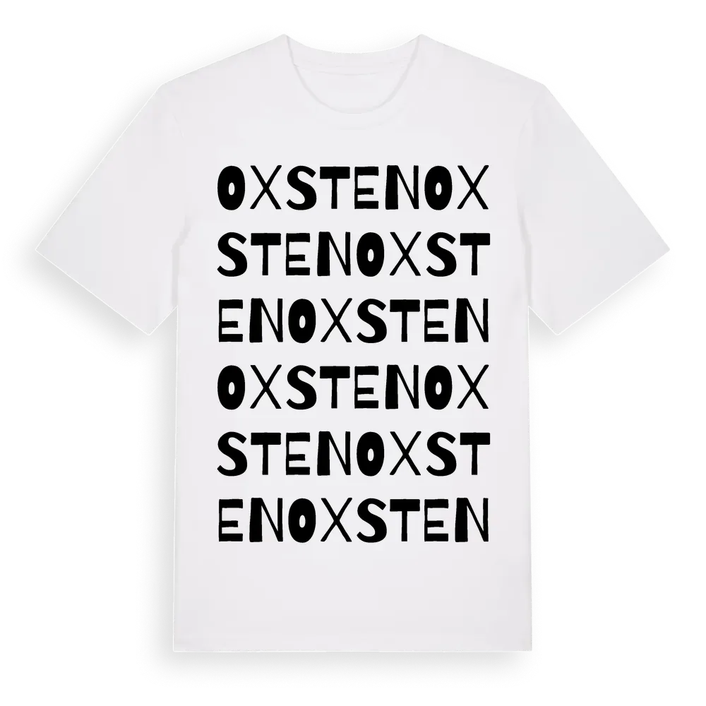 Oxsten ordlek t-shirt är inspirerad av Oxsten i Uppsala län, Sverige. Tröjan är designad för dig som har en speciell koppling till platsen – oavsett om du bor här, har rötterna här eller bara älskar Oxsten.