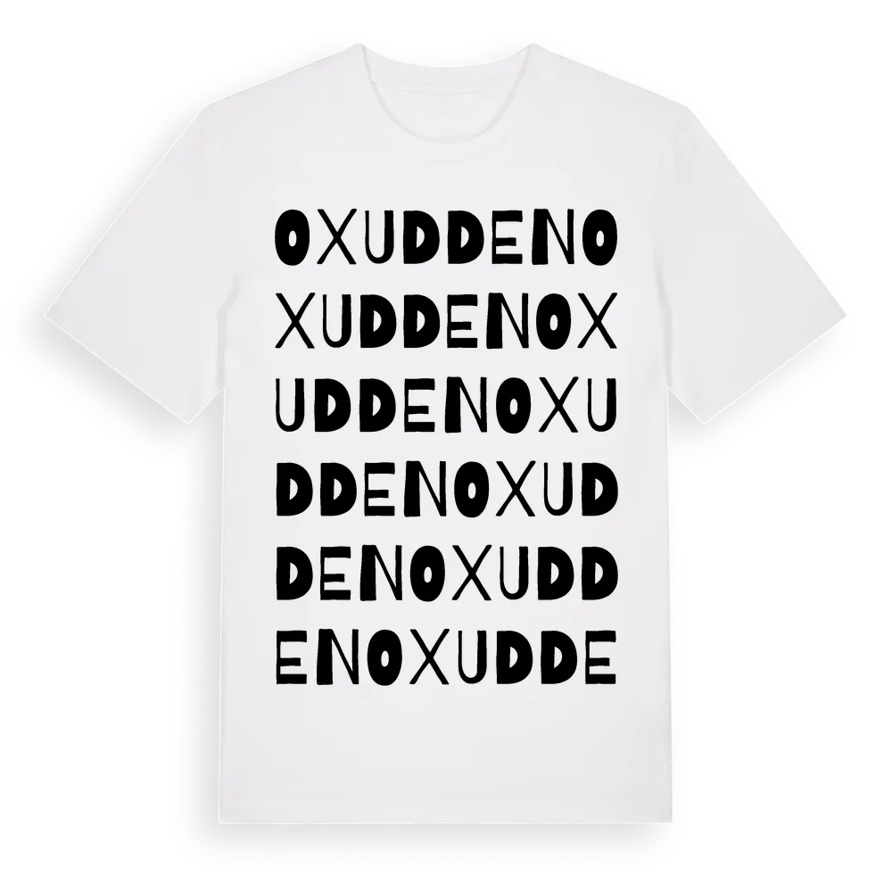 Oxudden ordlek t-shirt är inspirerad av byn Oxudden i Uppsala län, Sverige. Tröjan är designad för dig som har en speciell koppling till platsen – oavsett om du bor här, har rötterna här eller bara älskar Oxudden.