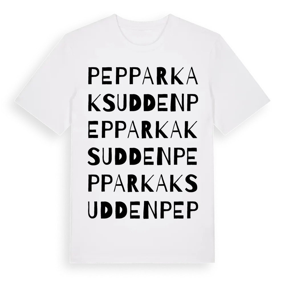 Pepparkaksudden ordlek t-shirt är inspirerad av Pepparkaksudden i Uppsala län, Sverige. Tröjan är designad för dig som har en speciell koppling till platsen – oavsett om du bor här, har rötterna här eller bara älskar Pepparkaksudden.