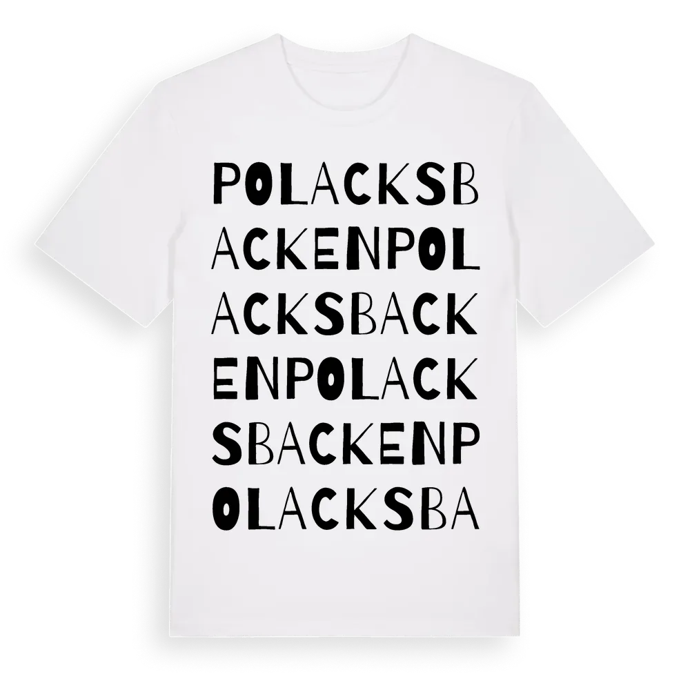 Polacksbacken ordlek t-shirt är inspirerad av stadsdelen Polacksbacken i Uppsala län, Sverige. Tröjan är designad för dig som har en speciell koppling till platsen – oavsett om du bor här, har rötterna här eller bara älskar Polacksbacken.