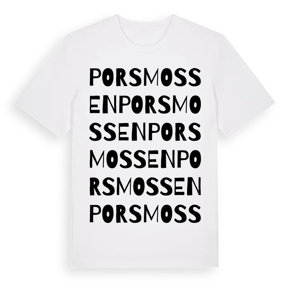 Porsmossen ordlek t-shirt är inspirerad av Porsmossen i Uppsala län, Sverige. Tröjan är designad för dig som har en speciell koppling till platsen – oavsett om du bor här, har rötterna här eller bara älskar Porsmossen.