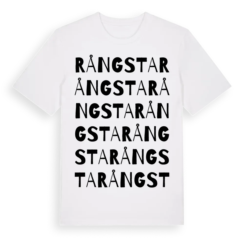 Rångsta ordlek t-shirt är inspirerad av byn Rångsta i Uppsala län, Sverige. Tröjan är designad för dig som har en speciell koppling till platsen – oavsett om du bor här, har rötterna här eller bara älskar Rångsta.
