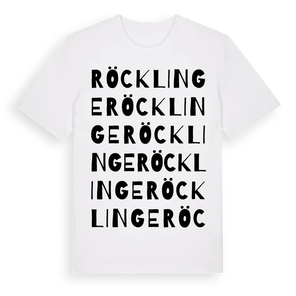 Röcklinge ordlek t-shirt är inspirerad av byn Röcklinge i Uppsala län, Sverige. Tröjan är designad för dig som har en speciell koppling till platsen – oavsett om du bor här, har rötterna här eller bara älskar Röcklinge.