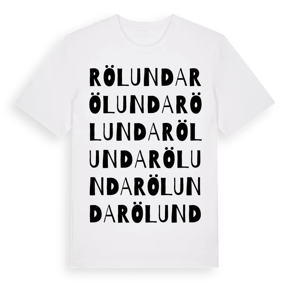 En ordlek byggd på Rölundas namn. Subtilt och klurig – ett motiv som bara de som verkligen känner platsen fullt ut förstår. Premium bomull, unisex – från Rölunda i Uppsala län.