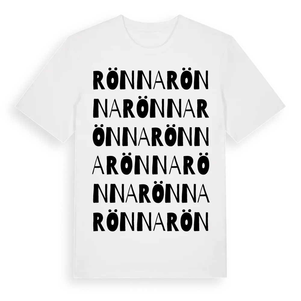 Rönna ordlek t-shirt är inspirerad av byn Rönna i Uppsala län, Sverige. Tröjan är designad för dig som har en speciell koppling till platsen – oavsett om du bor här, har rötterna här eller bara älskar Rönna.