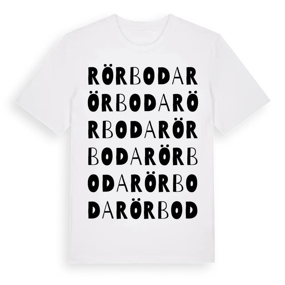 Rörboda ordlek t-shirt är inspirerad av byn Rörboda i Uppsala län, Sverige. Tröjan är designad för dig som har en speciell koppling till platsen – oavsett om du bor här, har rötterna här eller bara älskar Rörboda.