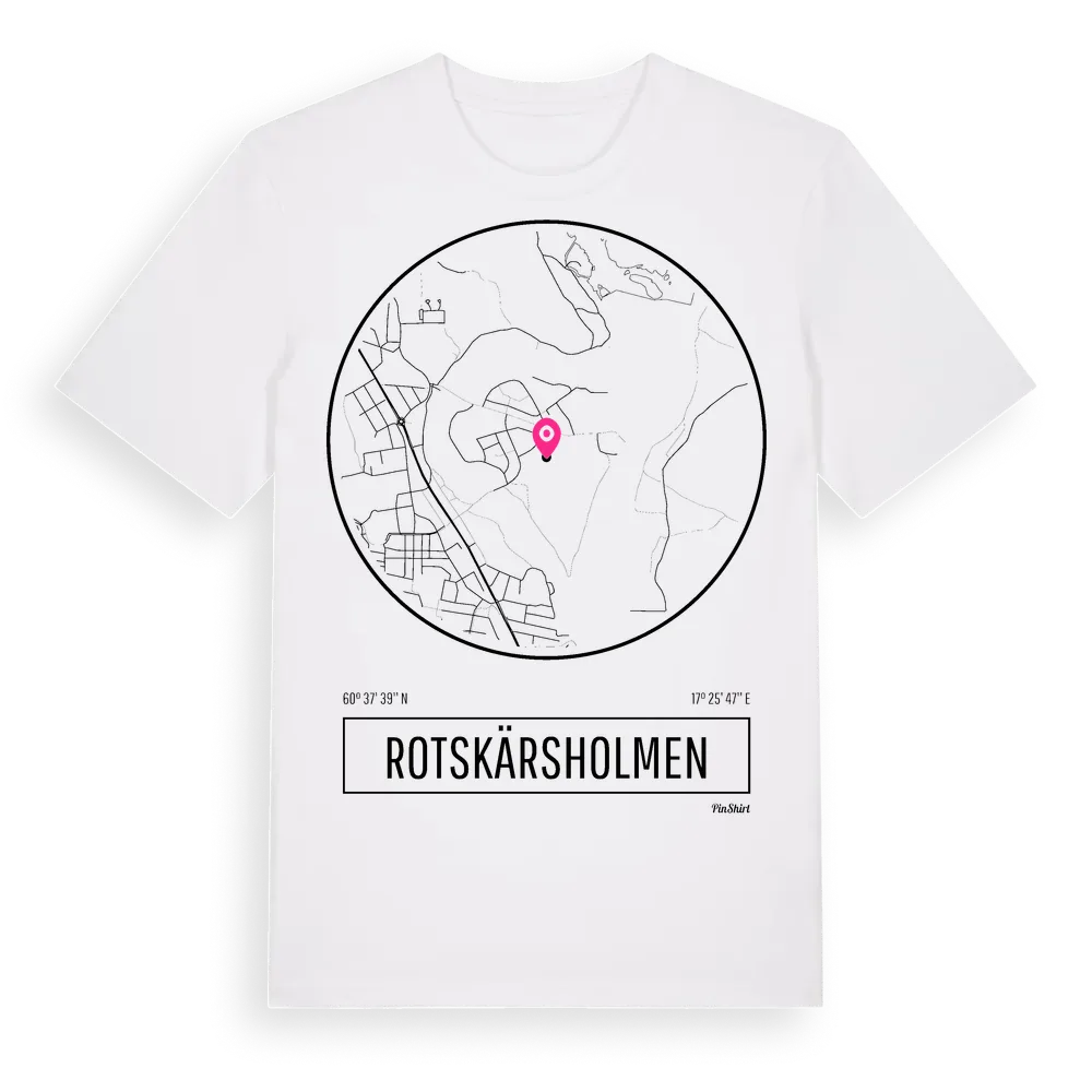 Rotskärsholmen t-shirt är inspirerad av ön Rotskärsholmen i Uppsala län, Sverige. Tröjan är designad för dig som har en speciell koppling till platsen – oavsett om du bor här, har rötterna här eller bara älskar Rotskärsholmen.
