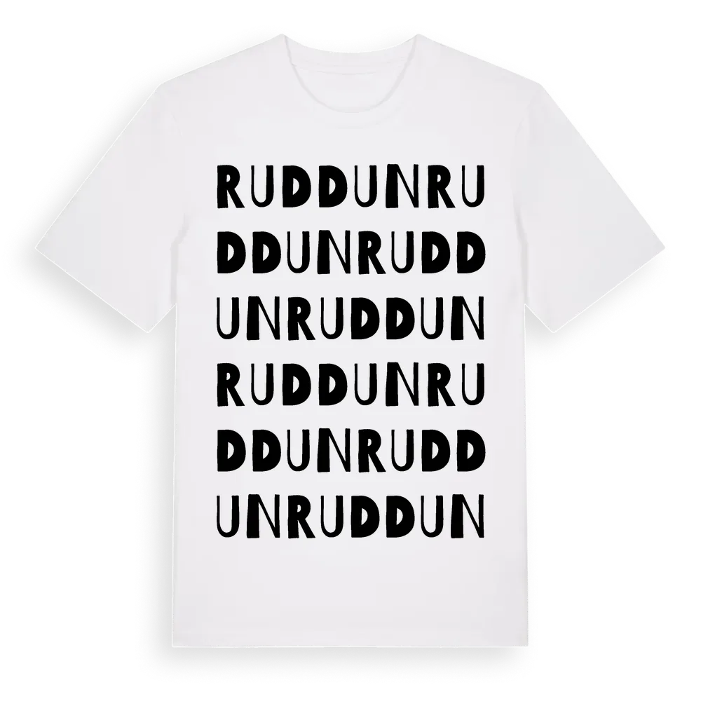 Ruddun ordlek t-shirt är inspirerad av byn Ruddun i Uppsala län, Sverige. Tröjan är designad för dig som har en speciell koppling till platsen – oavsett om du bor här, har rötterna här eller bara älskar Ruddun.