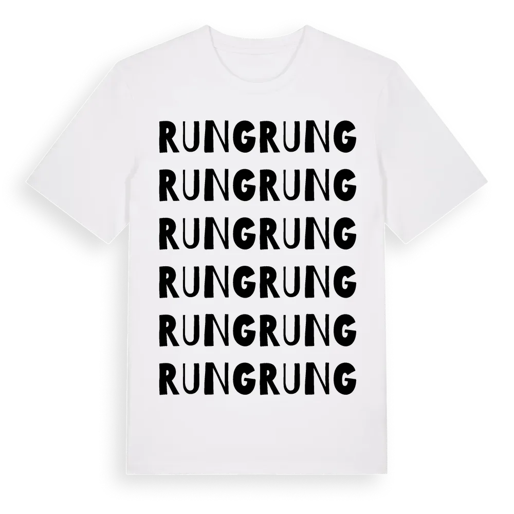 Rung ordlek t-shirt är inspirerad av byn Rung i Uppsala län, Sverige. Tröjan är designad för dig som har en speciell koppling till platsen – oavsett om du bor här, har rötterna här eller bara älskar Rung.