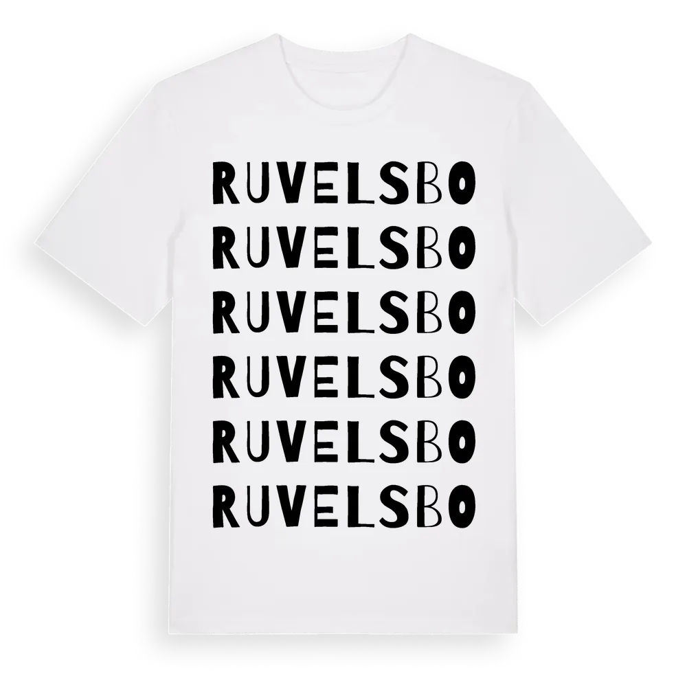 Ruvelsbo ordlek t-shirt är inspirerad av Ruvelsbo i Uppsala län, Sverige. Tröjan är designad för dig som har en speciell koppling till platsen – oavsett om du bor här, har rötterna här eller bara älskar Ruvelsbo.