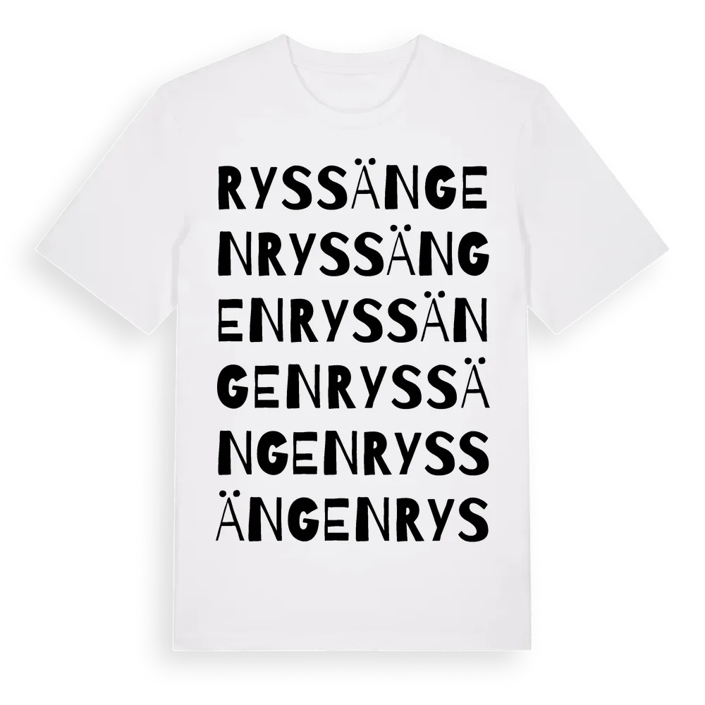 Ryssängen ordlek t-shirt är inspirerad av Ryssängen i Uppsala län, Sverige. Tröjan är designad för dig som har en speciell koppling till platsen – oavsett om du bor här, har rötterna här eller bara älskar Ryssängen.