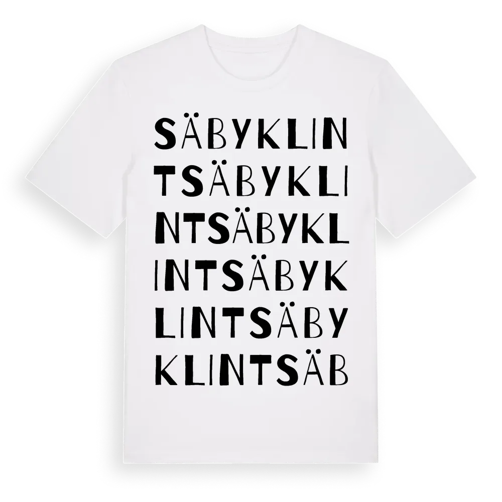 Säbyklint ordlek t-shirt är inspirerad av Säbyklint i Uppsala län, Sverige. Tröjan är designad för dig som har en speciell koppling till platsen – oavsett om du bor här, har rötterna här eller bara älskar Säbyklint.