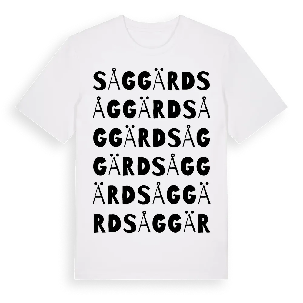 Såggärd ordlek t-shirt är inspirerad av Såggärd i Uppsala län, Sverige. Tröjan är designad för dig som har en speciell koppling till platsen – oavsett om du bor här, har rötterna här eller bara älskar Såggärd.