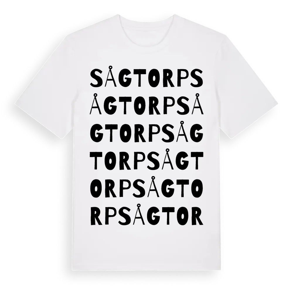 Sågtorp ordlek t-shirt är inspirerad av Sågtorp i Uppsala län, Sverige. Tröjan är designad för dig som har en speciell koppling till platsen – oavsett om du bor här, har rötterna här eller bara älskar Sågtorp.