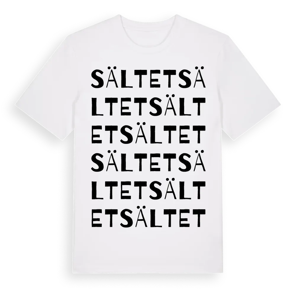 Sältet ordlek t-shirt är inspirerad av Sältet i Uppsala län, Sverige. Tröjan är designad för dig som har en speciell koppling till platsen – oavsett om du bor här, har rötterna här eller bara älskar Sältet.