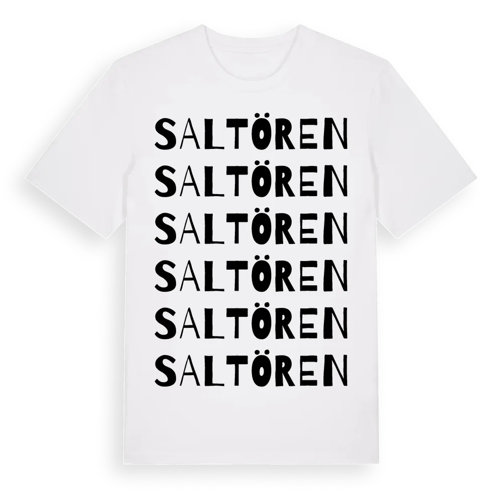 Saltören ordlek t-shirt är inspirerad av byn Saltören i Uppsala län, Sverige. Tröjan är designad för dig som har en speciell koppling till platsen – oavsett om du bor här, har rötterna här eller bara älskar Saltören.