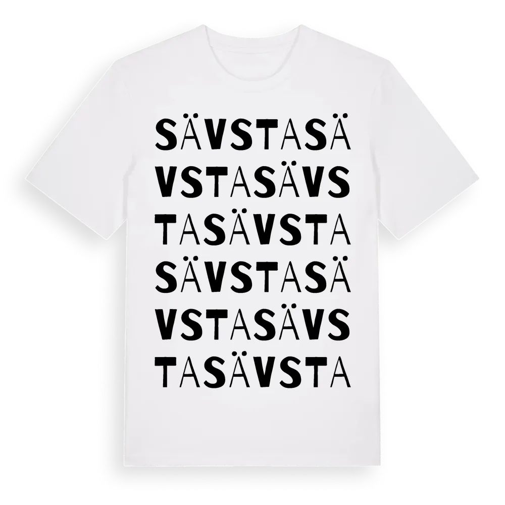Sävsta ordlek t-shirt är inspirerad av Sävsta i Uppsala län, Sverige. Tröjan är designad för dig som har en speciell koppling till platsen – oavsett om du bor här, har rötterna här eller bara älskar Sävsta.