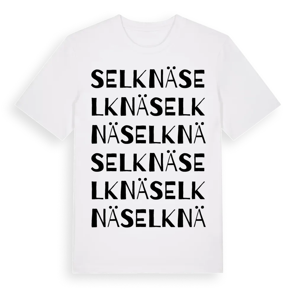 Selknä ordlek t-shirt är inspirerad av Selknä i Uppsala län, Sverige. Tröjan är designad för dig som har en speciell koppling till platsen – oavsett om du bor här, har rötterna här eller bara älskar Selknä.