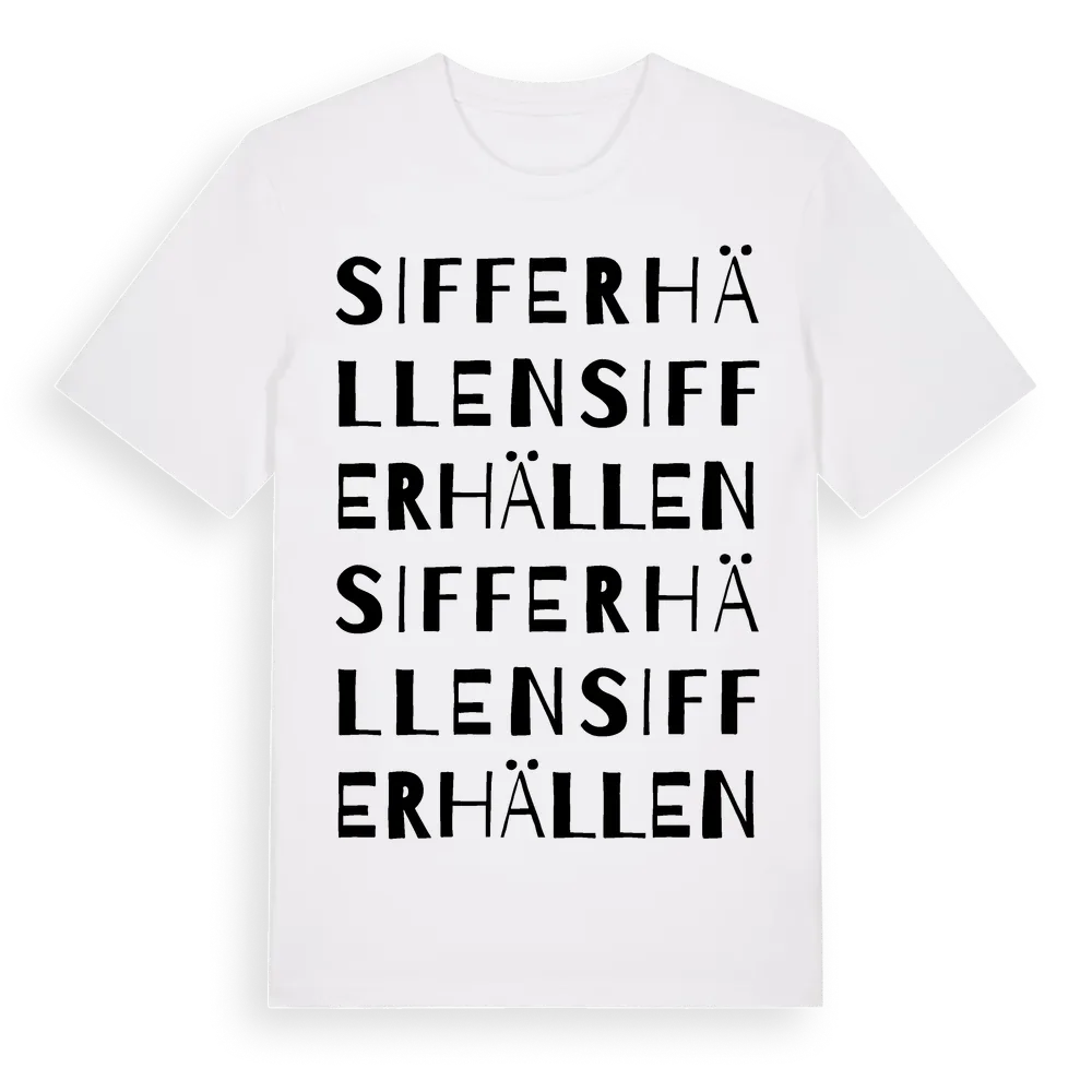 Sifferhällen ordlek t-shirt är inspirerad av Sifferhällen i Uppsala län, Sverige. Tröjan är designad för dig som har en speciell koppling till platsen – oavsett om du bor här, har rötterna här eller bara älskar Sifferhällen.