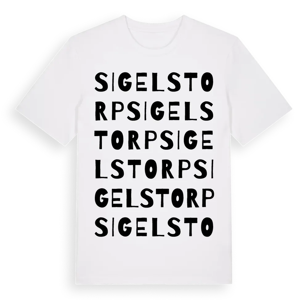Sigelstorp ordlek t-shirt är inspirerad av Sigelstorp i Uppsala län, Sverige. Tröjan är designad för dig som har en speciell koppling till platsen – oavsett om du bor här, har rötterna här eller bara älskar Sigelstorp.