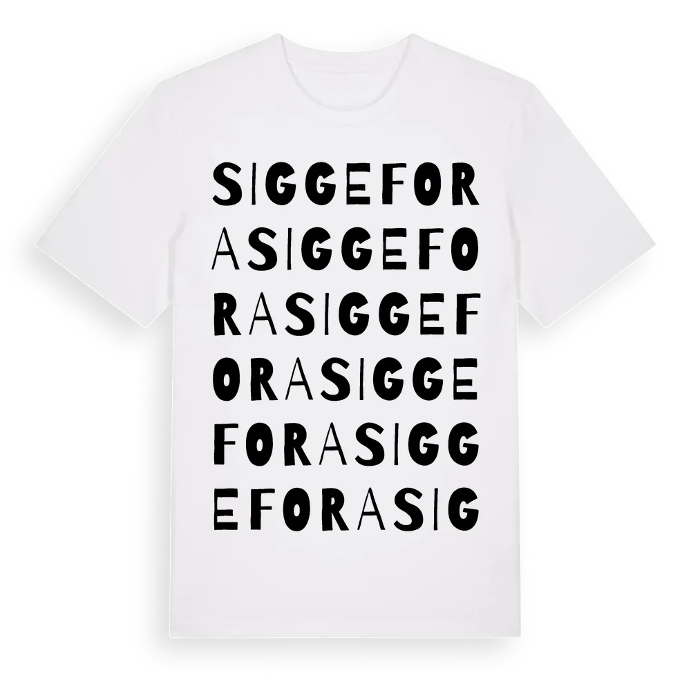 Siggefora ordlek t-shirt är inspirerad av Siggefora i Uppsala län, Sverige. Tröjan är designad för dig som har en speciell koppling till platsen – oavsett om du bor här, har rötterna här eller bara älskar Siggefora.