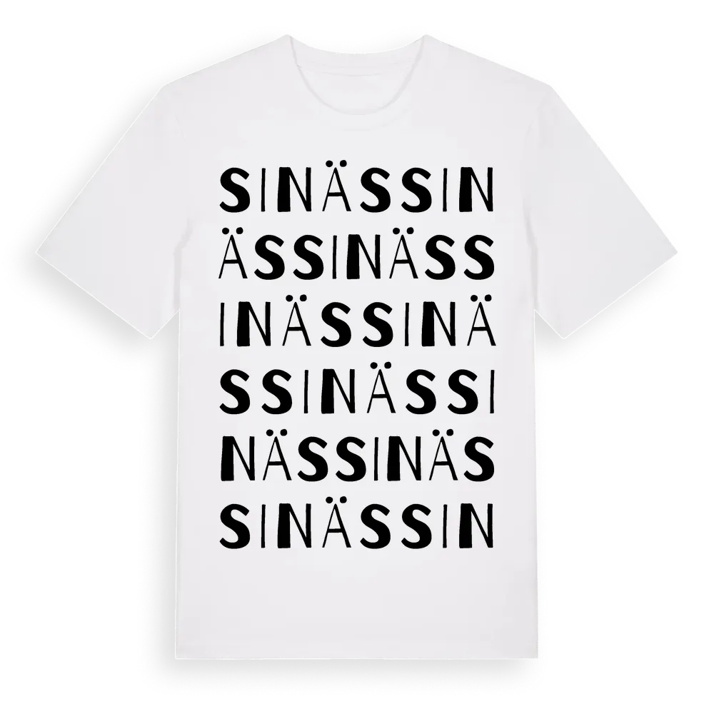 Sinäs ordlek t-shirt är inspirerad av Sinäs i Uppsala län, Sverige. Tröjan är designad för dig som har en speciell koppling till platsen – oavsett om du bor här, har rötterna här eller bara älskar Sinäs.
