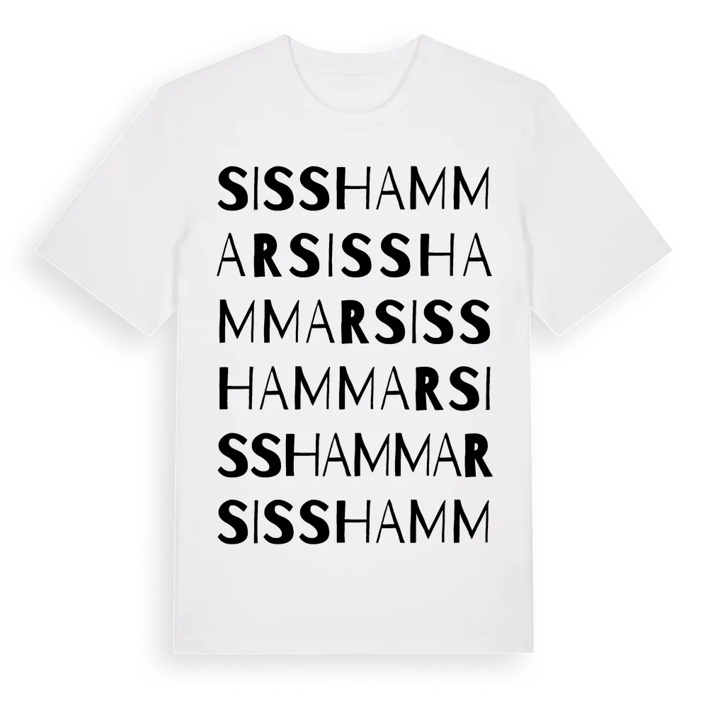 Sisshammar ordlek t-shirt är inspirerad av Sisshammar i Uppsala län, Sverige. Tröjan är designad för dig som har en speciell koppling till platsen – oavsett om du bor här, har rötterna här eller bara älskar Sisshammar.
