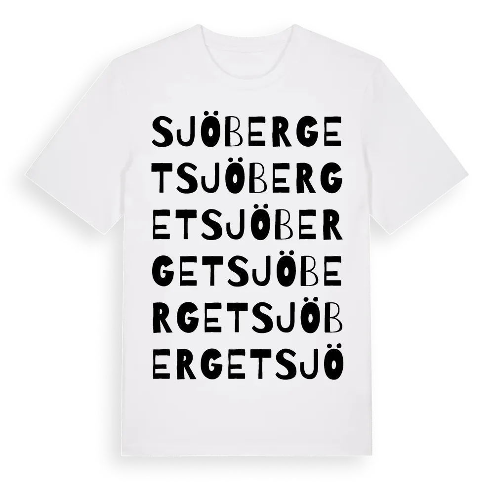 Sjöberget ordlek t-shirt är inspirerad av Sjöberget i Uppsala län, Sverige. Tröjan är designad för dig som har en speciell koppling till platsen – oavsett om du bor här, har rötterna här eller bara älskar Sjöberget.