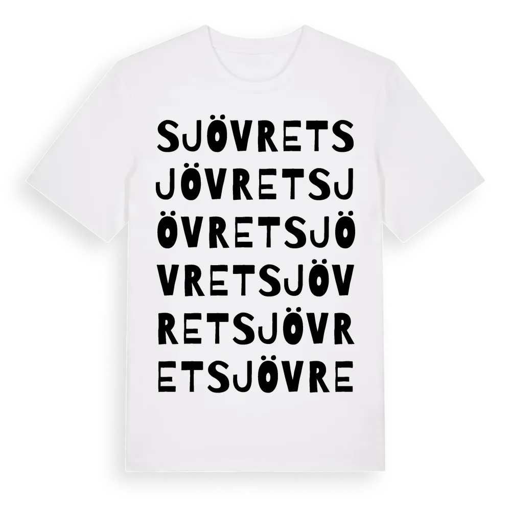 Sjövret ordlek t-shirt är inspirerad av Sjövret i Uppsala län, Sverige. Tröjan är designad för dig som har en speciell koppling till platsen – oavsett om du bor här, har rötterna här eller bara älskar Sjövret.