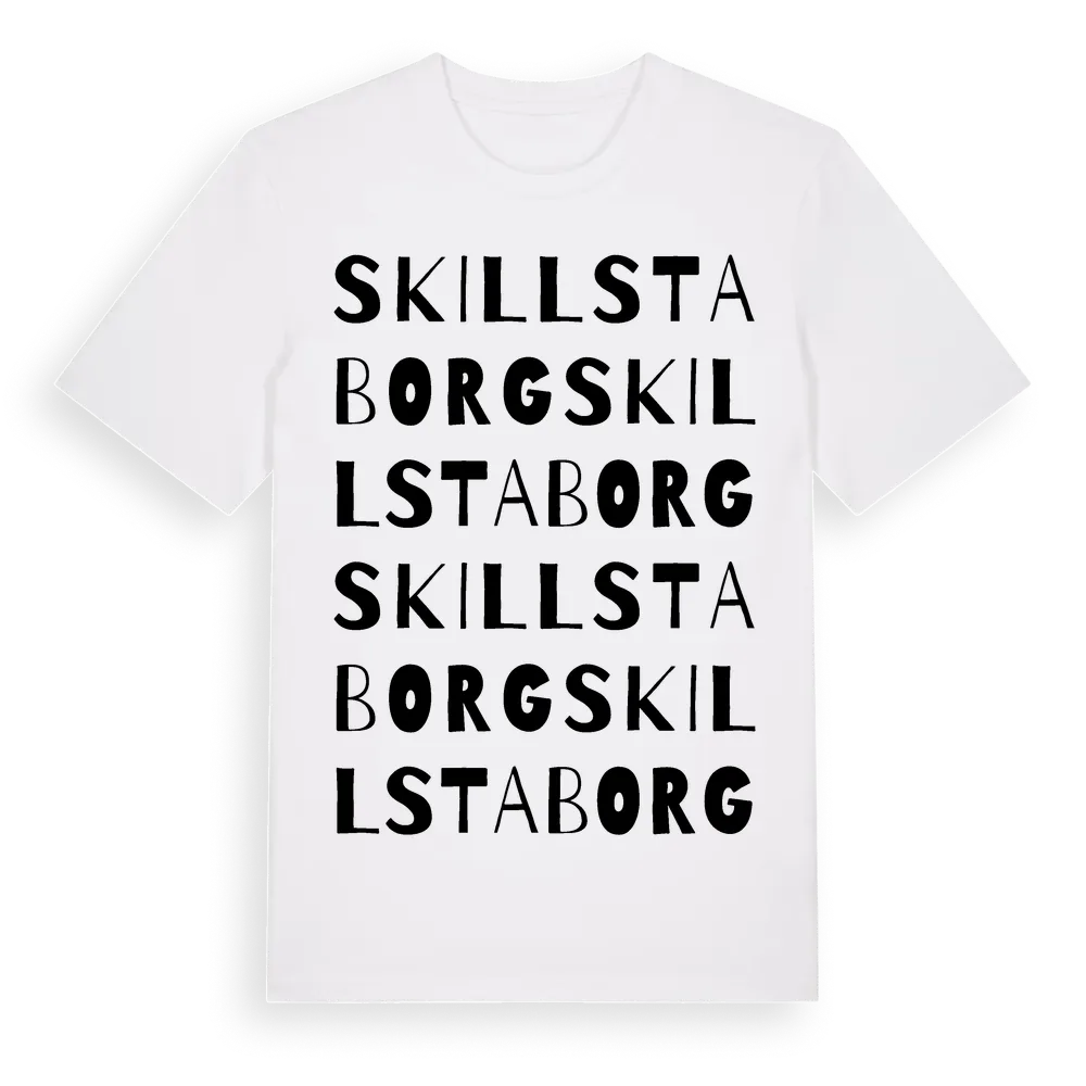 Skillstaborg ordlek t-shirt är inspirerad av Skillstaborg i Uppsala län, Sverige. Tröjan är designad för dig som har en speciell koppling till platsen – oavsett om du bor här, har rötterna här eller bara älskar Skillstaborg.