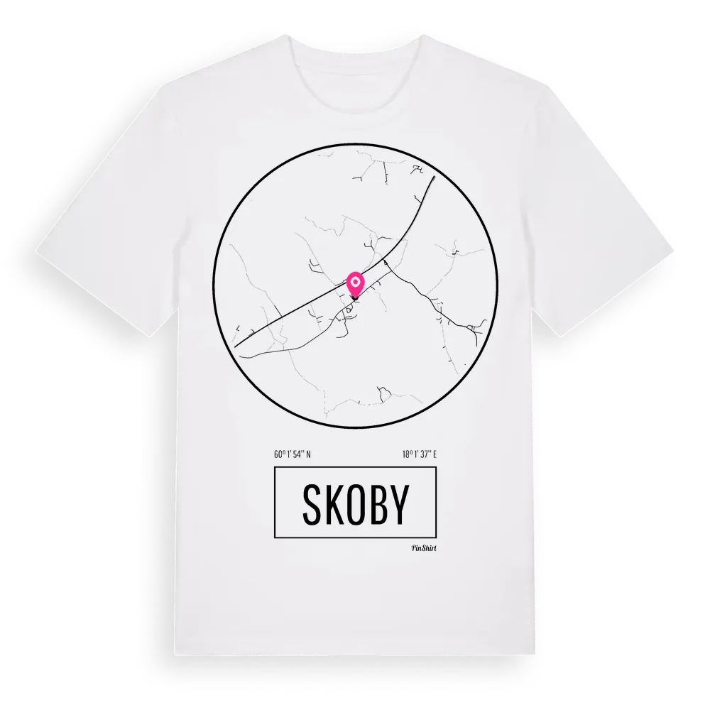 Skoby t-shirt är inspirerad av byn Skoby i Uppsala län, Sverige. Tröjan är designad för dig som har en speciell koppling till platsen – oavsett om du bor här, har rötterna här eller bara älskar Skoby.
