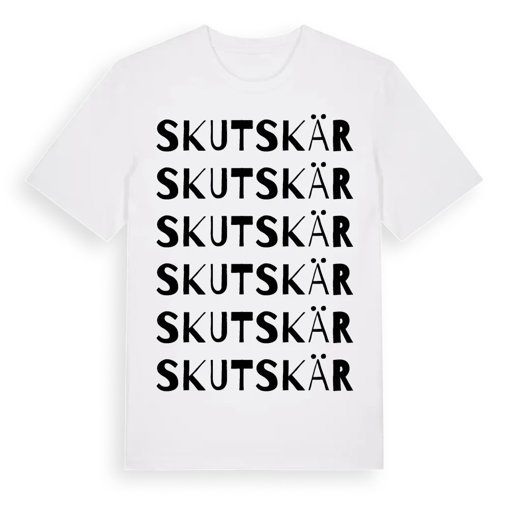 Skutskär ordlek t-shirt är inspirerad av staden Skutskär i Uppsala län, Sverige. Tröjan är designad för dig som har en speciell koppling till platsen – oavsett om du bor här, har rötterna här eller bara älskar Skutskär.