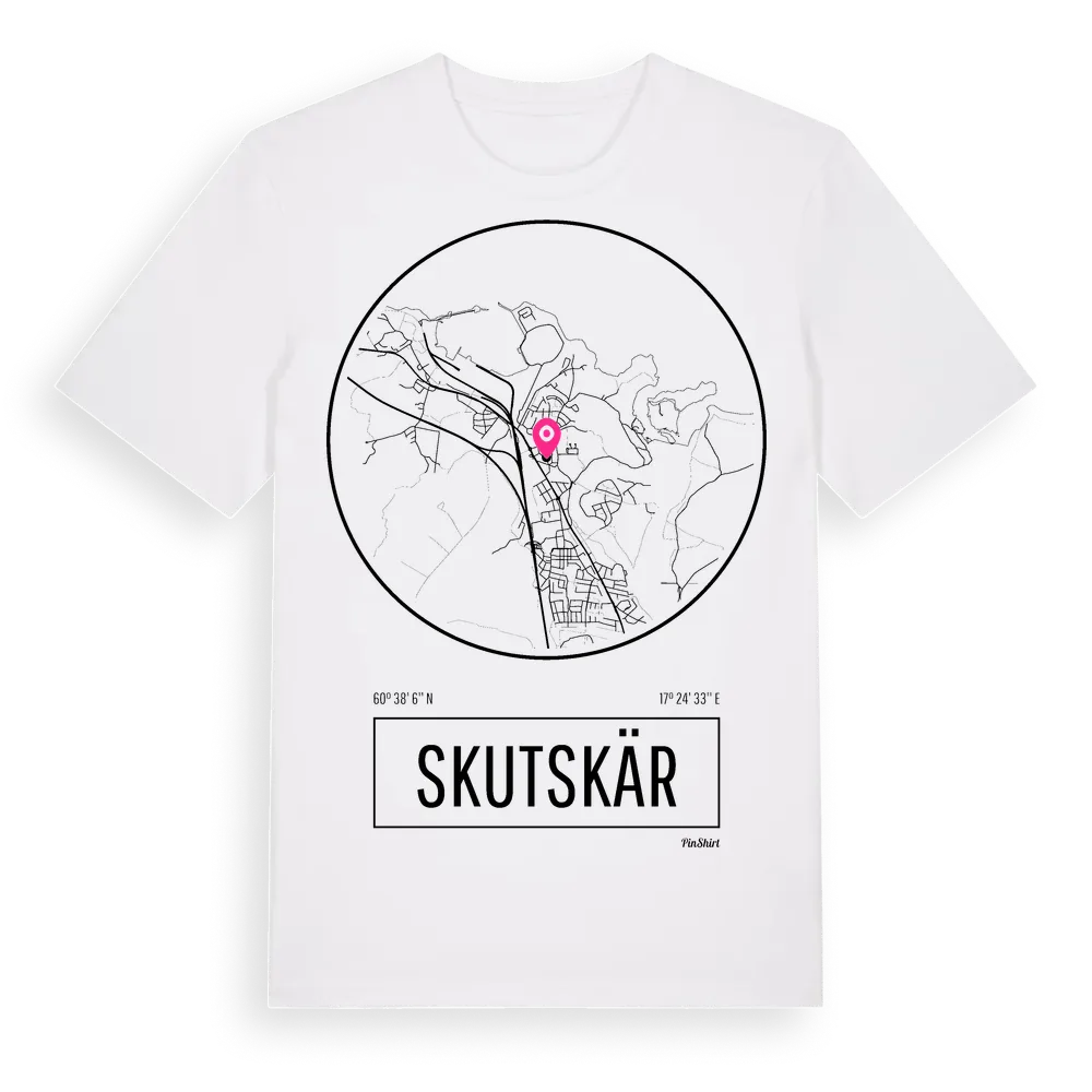 Skutskär t-shirt är inspirerad av staden Skutskär i Uppsala län, Sverige. Tröjan är designad för dig som har en speciell koppling till platsen – oavsett om du bor här, har rötterna här eller bara älskar Skutskär.