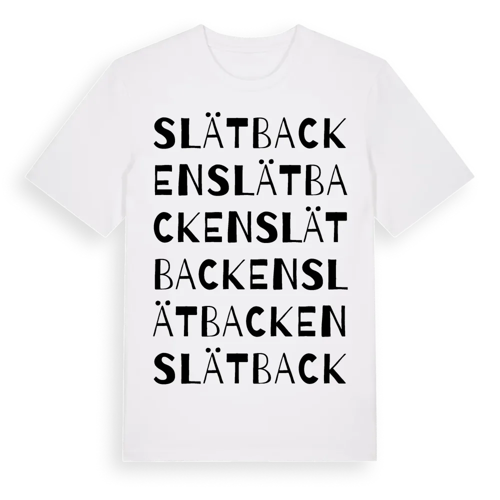Slätbacken ordlek t-shirt är inspirerad av Slätbacken i Uppsala län, Sverige. Tröjan är designad för dig som har en speciell koppling till platsen – oavsett om du bor här, har rötterna här eller bara älskar Slätbacken.