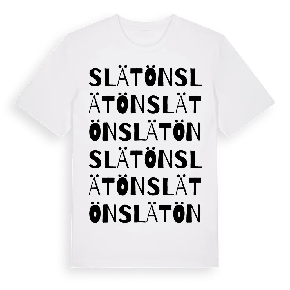 Slätön ordlek t-shirt är inspirerad av ön Slätön i Uppsala län, Sverige. Tröjan är designad för dig som har en speciell koppling till platsen – oavsett om du bor här, har rötterna här eller bara älskar Slätön.