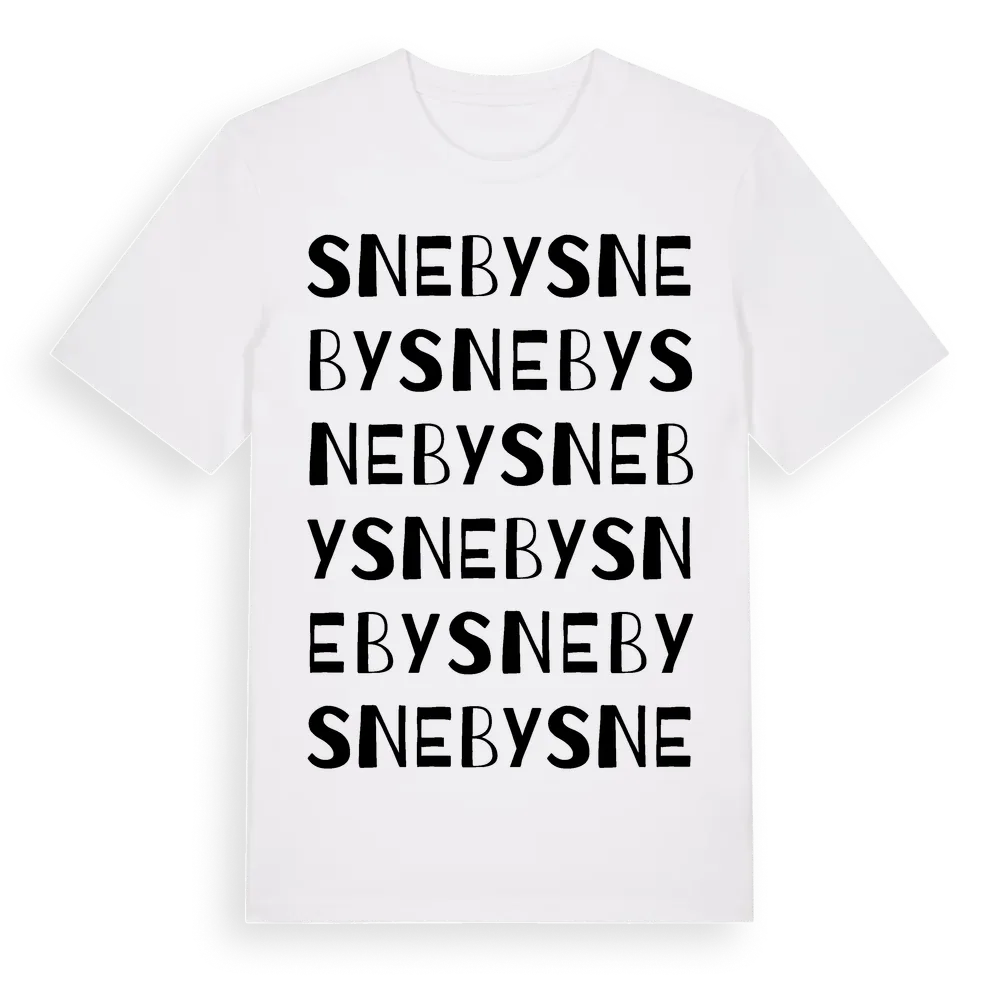 En ordlek byggd på Snebys namn. Subtilt och klurig – ett motiv som bara de som verkligen känner platsen fullt ut förstår. Premium bomull, unisex – från byn Sneby i Uppsala län.