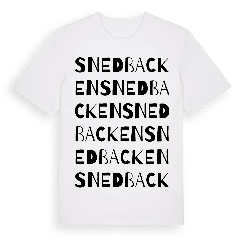 En ordlek byggd på Snedbackens namn. Subtilt och klurig – ett motiv som bara de som verkligen känner platsen fullt ut förstår. Premium bomull, unisex – från Snedbacken i Uppsala län.