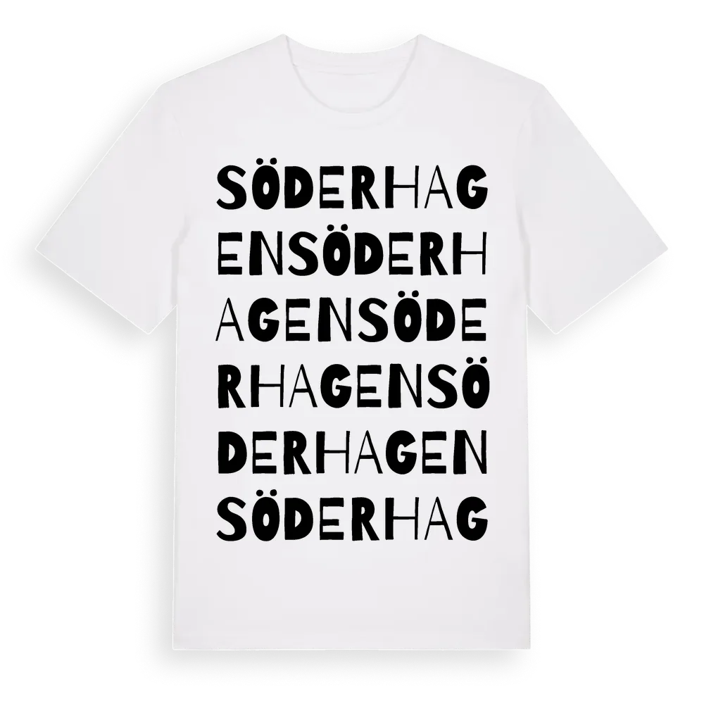 Söderhagen ordlek t-shirt är inspirerad av Söderhagen i Uppsala län, Sverige. Tröjan är designad för dig som har en speciell koppling till platsen – oavsett om du bor här, har rötterna här eller bara älskar Söderhagen.