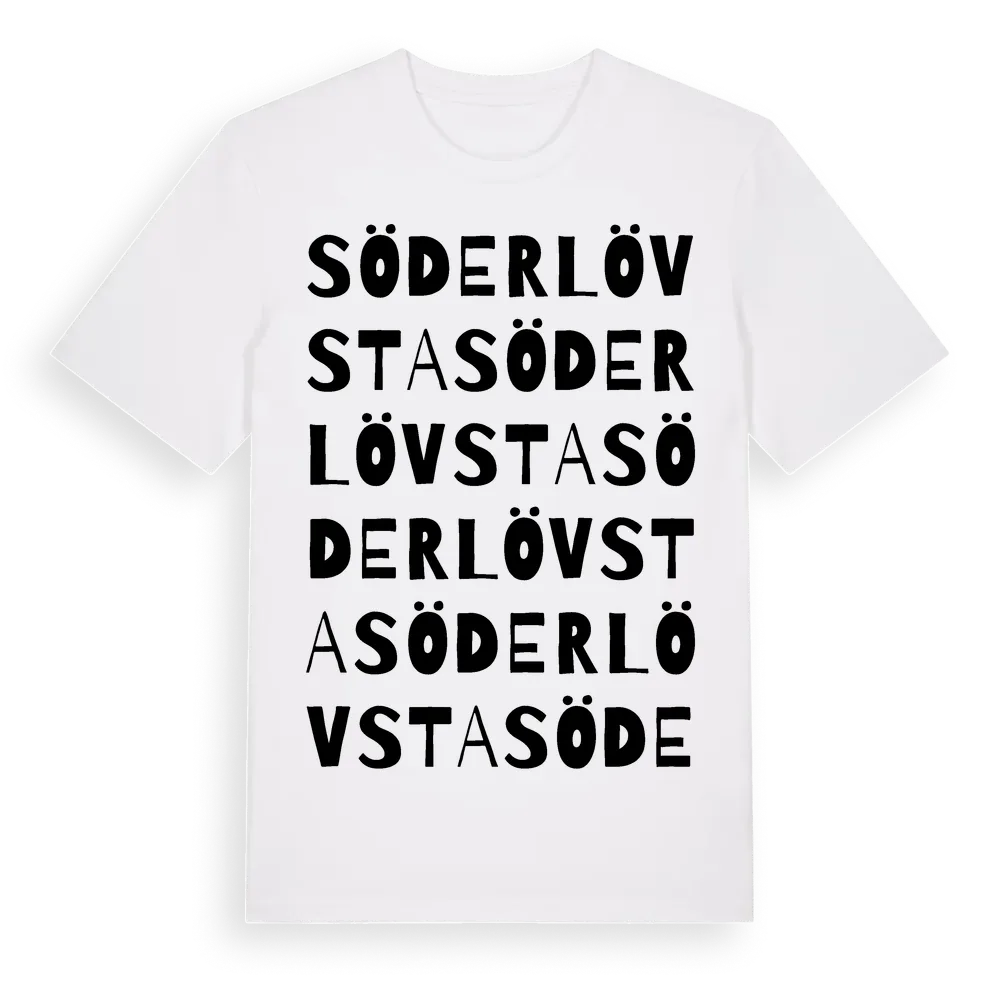 Söderlövsta ordlek t-shirt är inspirerad av byn Söderlövsta i Uppsala län, Sverige. Tröjan är designad för dig som har en speciell koppling till platsen – oavsett om du bor här, har rötterna här eller bara älskar Söderlövsta.