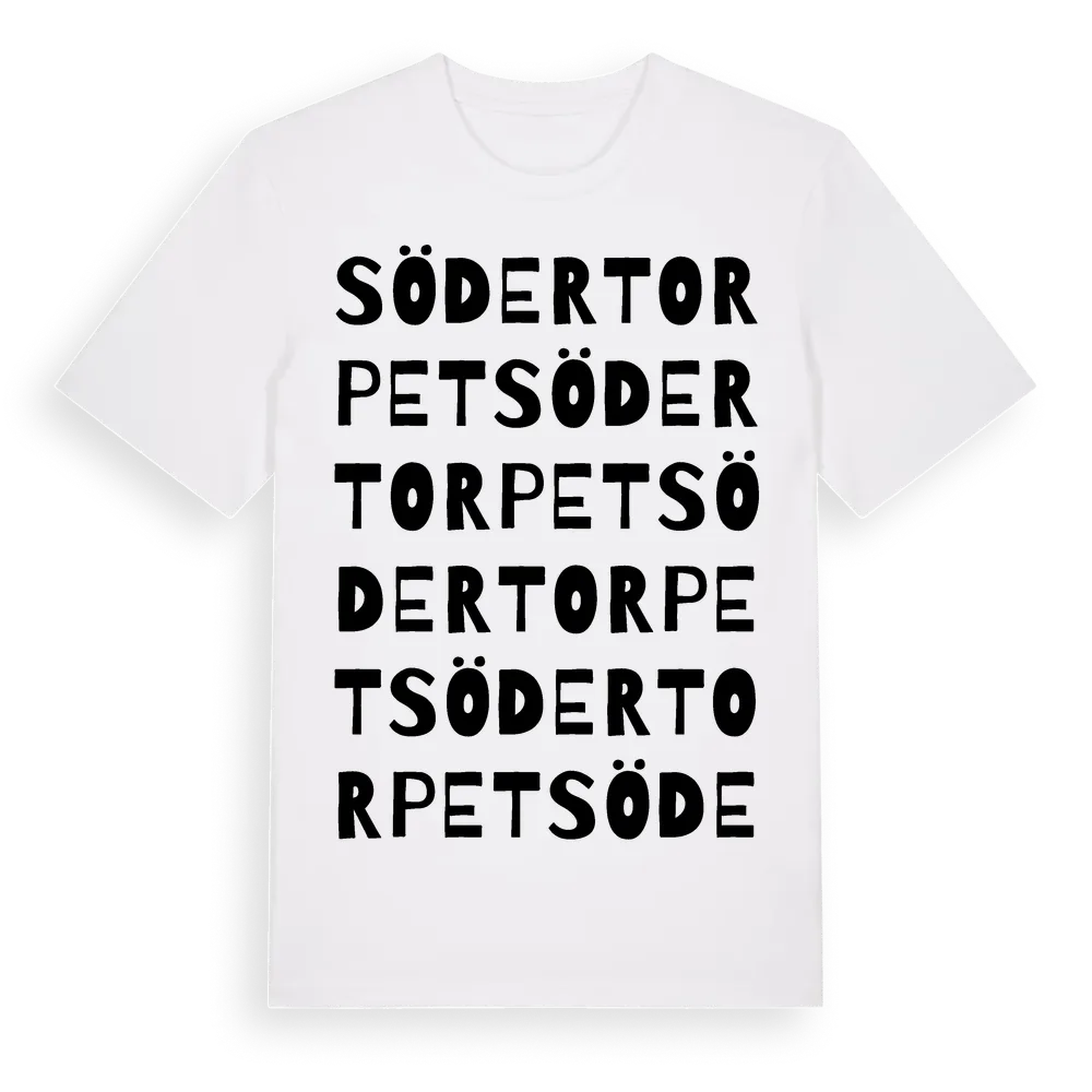 Södertorpet ordlek t-shirt är inspirerad av Södertorpet i Uppsala län, Sverige. Tröjan är designad för dig som har en speciell koppling till platsen – oavsett om du bor här, har rötterna här eller bara älskar Södertorpet.