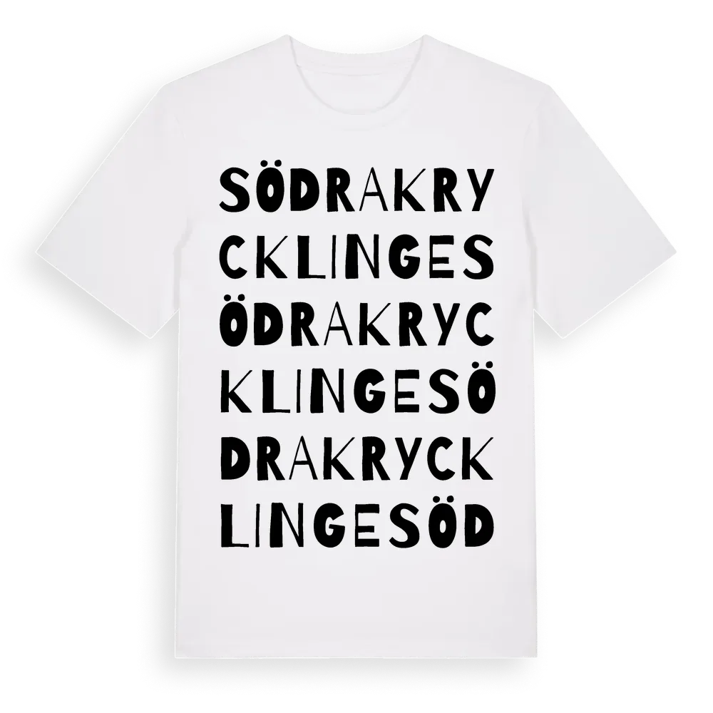 Södra Krycklinge ordlek t-shirt är inspirerad av byn Södra Krycklinge i Uppsala län, Sverige. Tröjan är designad för dig som har en speciell koppling till platsen – oavsett om du bor här, har rötterna här eller bara älskar Södra Krycklinge.