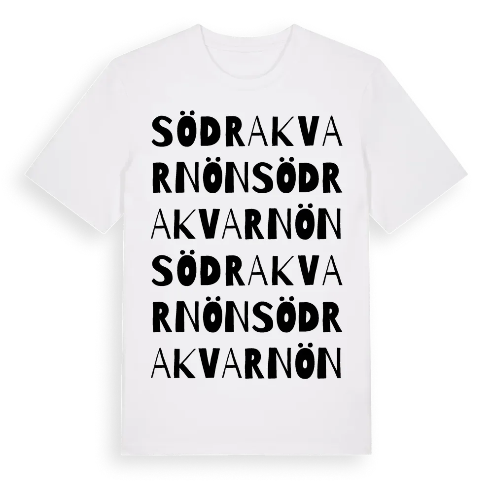 Södra Kvarnön ordlek t-shirt är inspirerad av ön Södra Kvarnön i Uppsala län, Sverige. Tröjan är designad för dig som har en speciell koppling till platsen – oavsett om du bor här, har rötterna här eller bara älskar Södra Kvarnön.