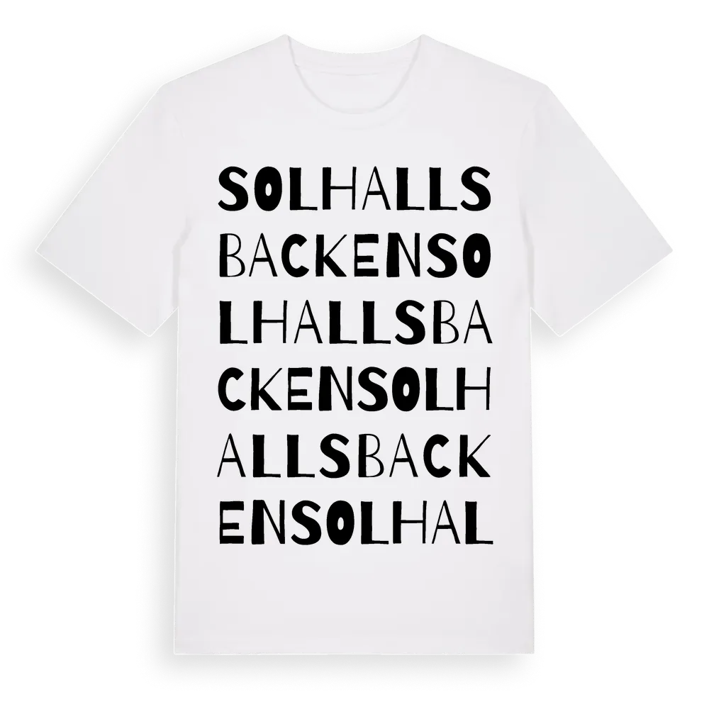 Solhallsbacken ordlek t-shirt är inspirerad av Solhallsbacken i Uppsala län, Sverige. Tröjan är designad för dig som har en speciell koppling till platsen – oavsett om du bor här, har rötterna här eller bara älskar Solhallsbacken.