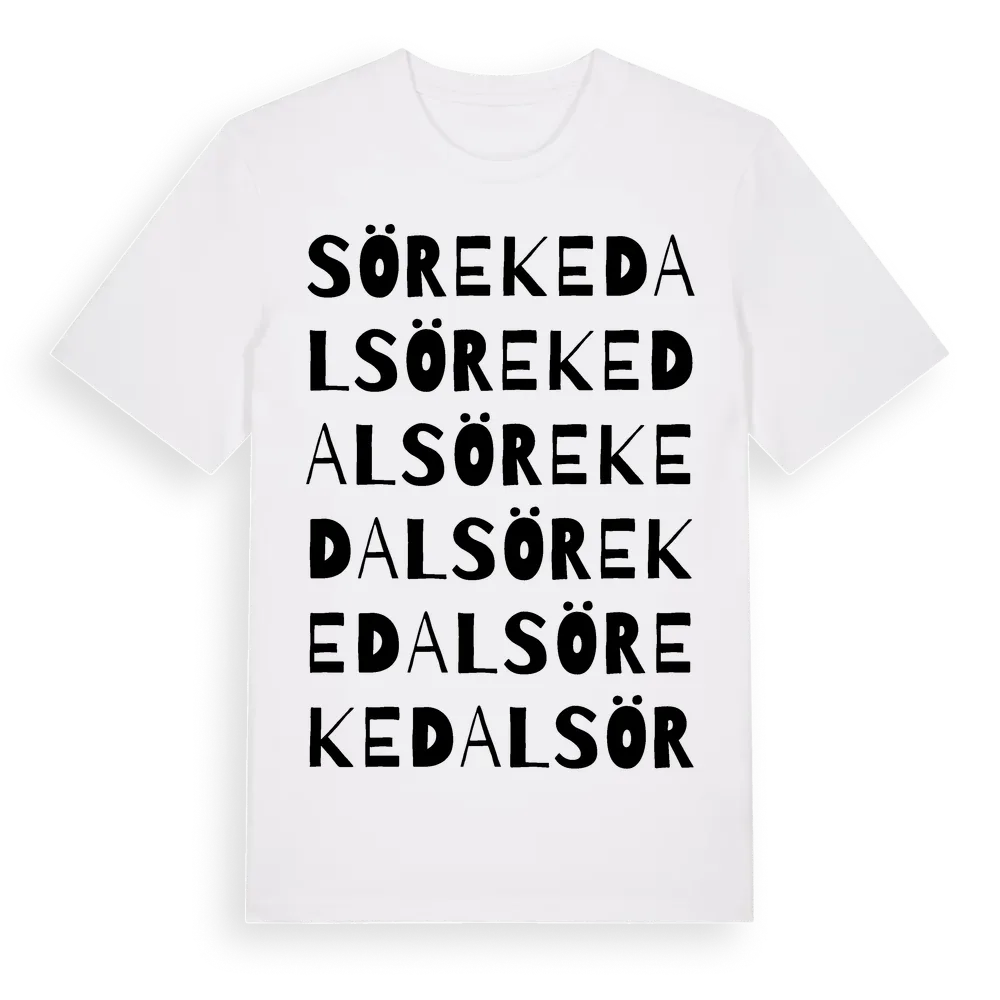 Sör Ekedal ordlek t-shirt är inspirerad av Sör Ekedal i Uppsala län, Sverige. Tröjan är designad för dig som har en speciell koppling till platsen – oavsett om du bor här, har rötterna här eller bara älskar Sör Ekedal.
