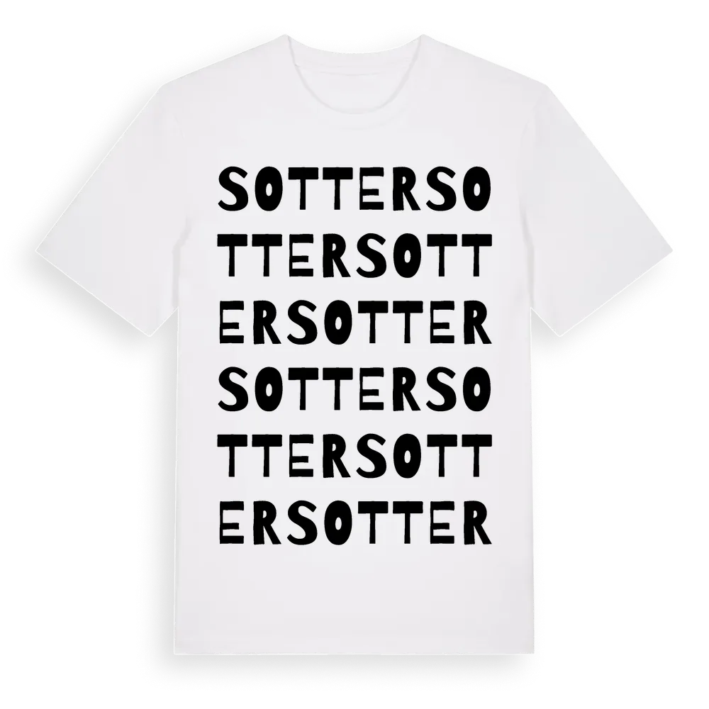 En ordlek byggd på Sotters namn. Subtilt och klurig – ett motiv som bara de som verkligen känner platsen fullt ut förstår. Premium bomull, unisex – från Sotter i Uppsala län.