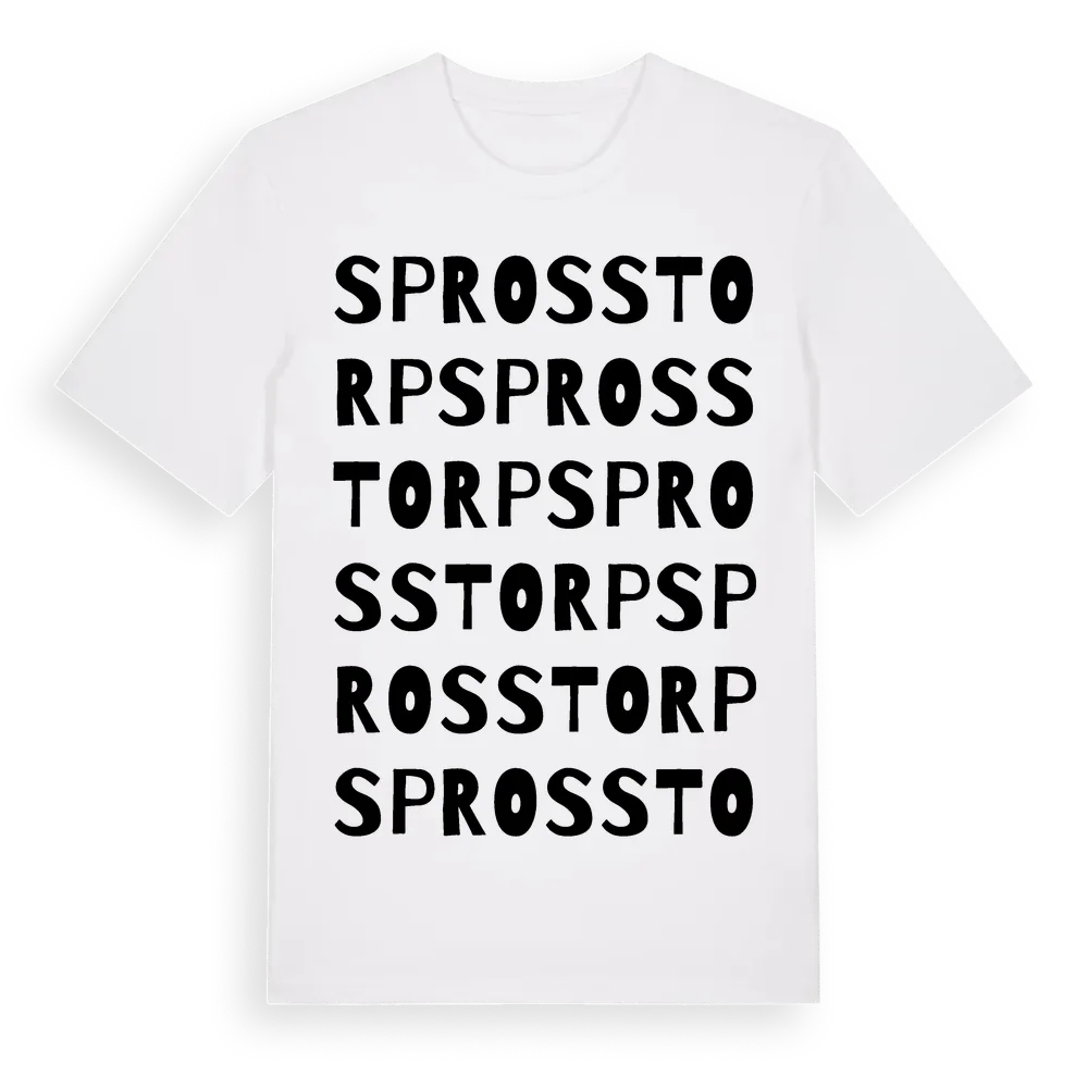 Sprosstorp ordlek t-shirt är inspirerad av Sprosstorp i Uppsala län, Sverige. Tröjan är designad för dig som har en speciell koppling till platsen – oavsett om du bor här, har rötterna här eller bara älskar Sprosstorp.