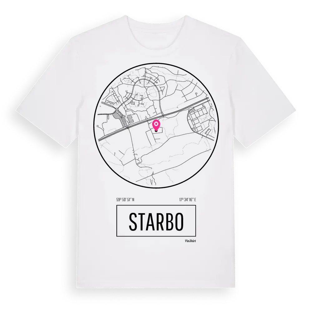 Ett rent, runt tryck med Starbos namn. Minimalistiskt och stilrent – perfekt för den som känner platsen utan att skrika det. Premium bomull, unisex – från stadsdelen Starbo i Uppsala län.