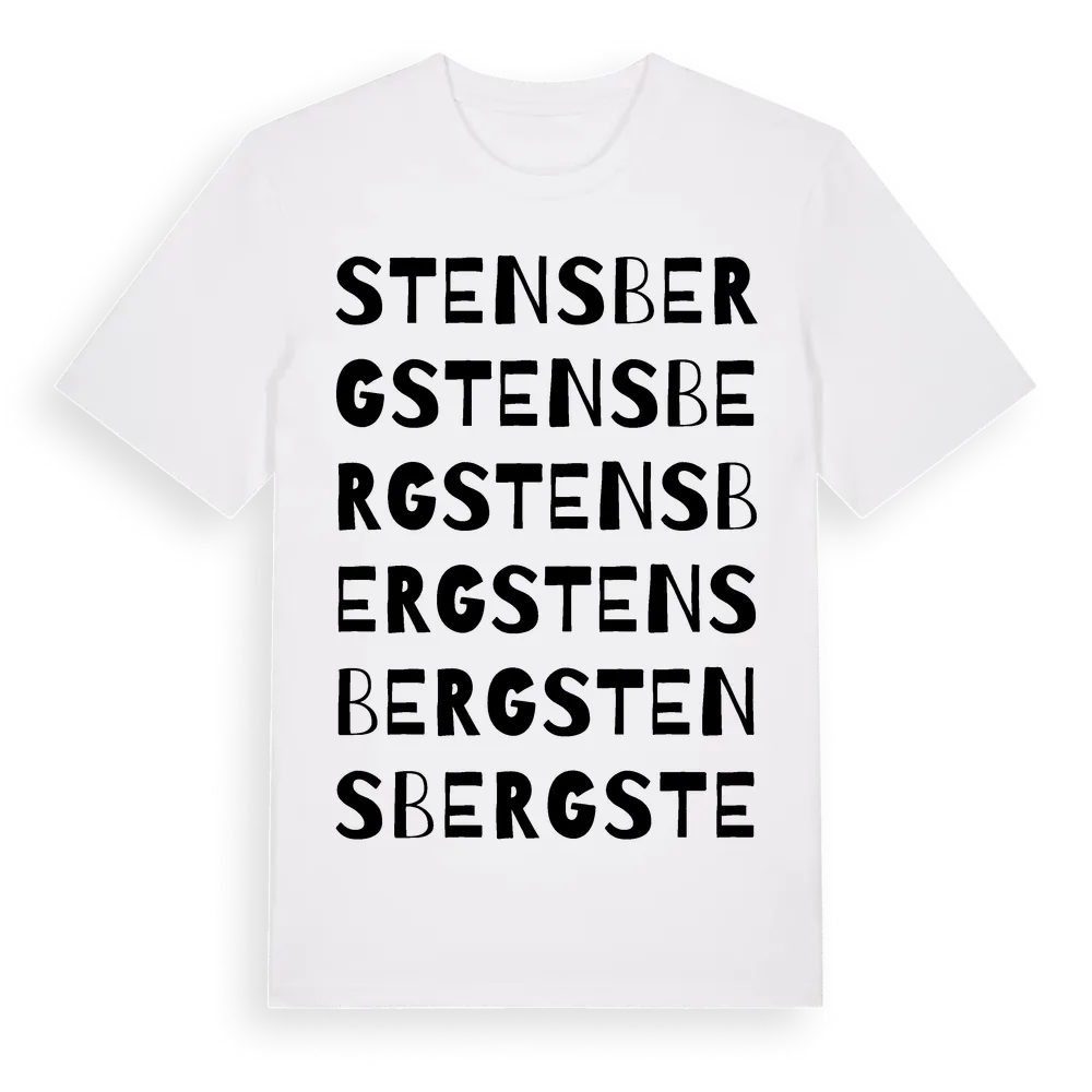 Stensberg ordlek t-shirt är inspirerad av Stensberg i Uppsala län, Sverige. Tröjan är designad för dig som har en speciell koppling till platsen – oavsett om du bor här, har rötterna här eller bara älskar Stensberg.